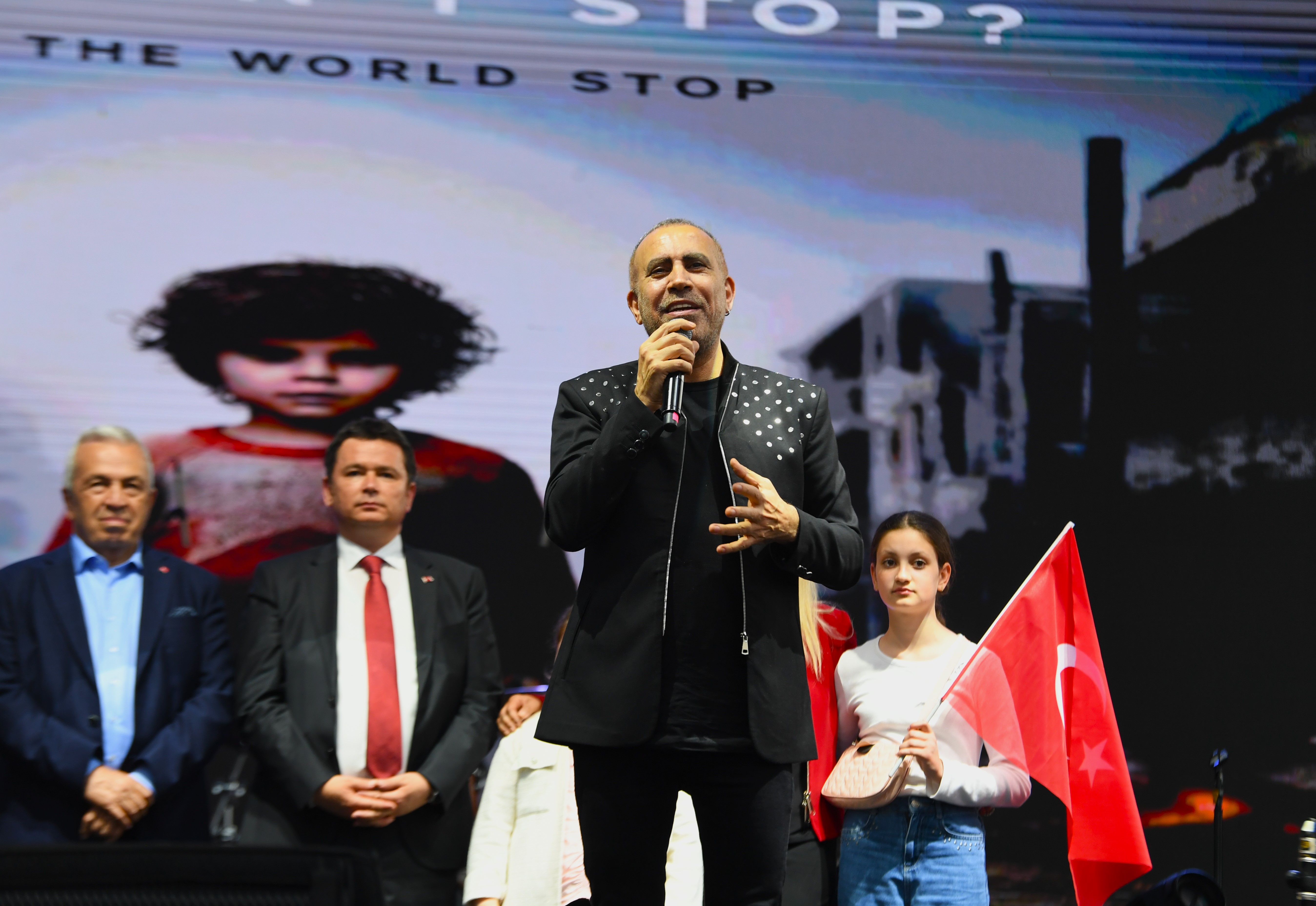 Osmangazi Belediyesi tarafından düzenlenen 19 Mayıs Atatürk’ü Anma, Gençlik ve Spor Bayramı kutlamalarına katılan ünlü şarkıcı Haluk Levent, Filistin’de yaşanan soykırıma dikkat çekti. Ünlü şarkıcının isteği üzerine on binlerce kişi, İsrail’in Gazze’ye yönelik saldırılarında, başta çocuklar olmak üzere tüm hayatını kaybedenler için saygı duruşunda bulundu.