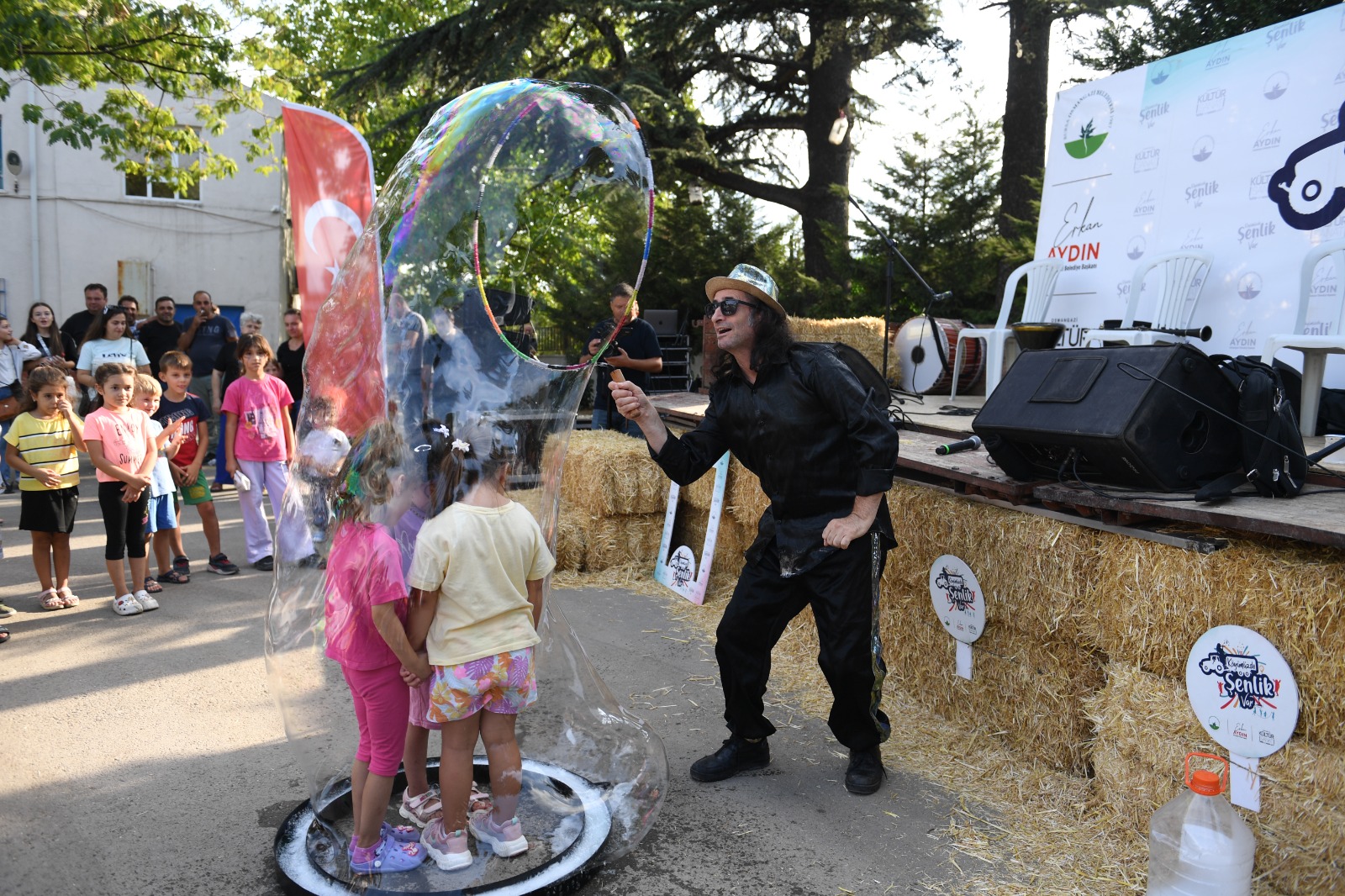 Osmangazi Belediyesi’nin yaz döneminde ilçe genelindeki 32 dağ ve ova köyü için hazırladığı ‘Köyümüzde Şenlik Var’ etkinliklerinin bu haftaki adresi İsmetiye Mahallesi oldu. Okul bahçesinde düzenlenen program, ilk olarak çocuklara yönelik birbirinden renkli ve eğlenceli aktiviteler ile başladı. Programa katılan onlarca çocuk, sokak oyunları, şişme oyun parkurları, zıp zıp, langırt, bouble şov gibi aktiviteler ve çeşitli ikramlar ile unutamayacakları bir gün yaşadı. Gurup Kucaklaşma’nın söylediği birbirinden hareketli türküler eşliğinde sahneye çıkan İsmetiye sakinleri ise bol bol oynayarak keyifli vakit geçirdi.