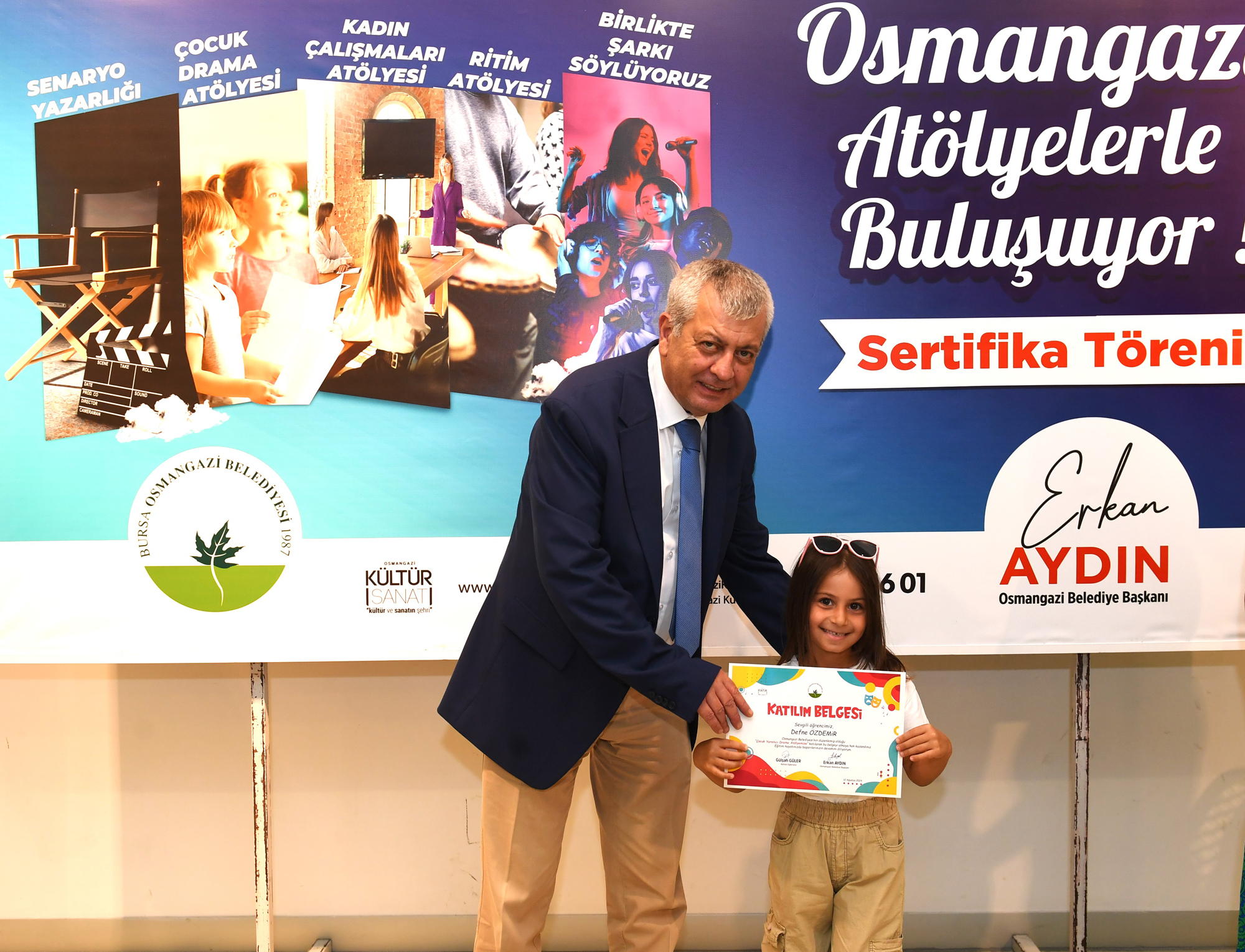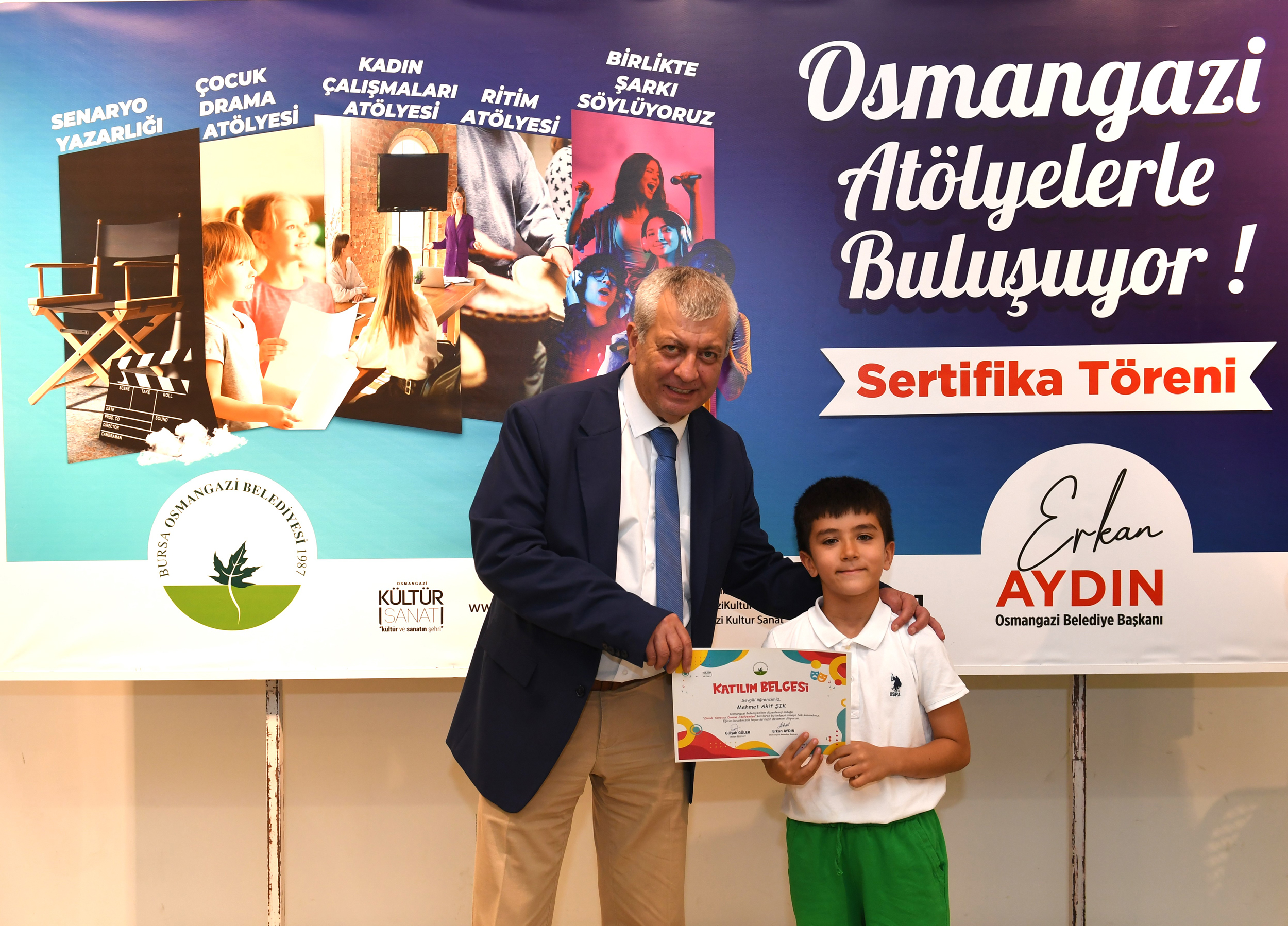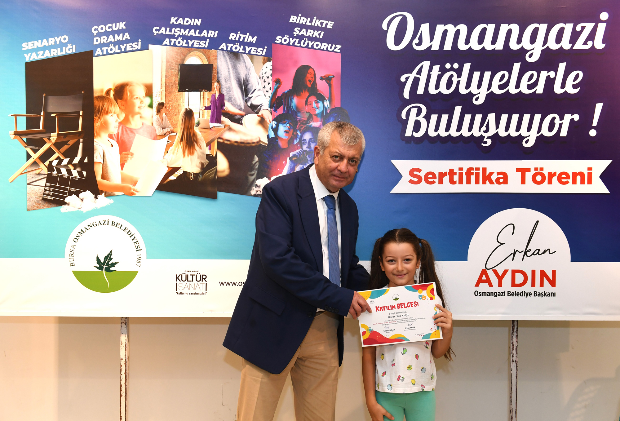 Sertifikalarını alan çocuklar, kendilerine bu imkanı sunan Osmangazi Belediye Başkanı Erkan Aydın’a teşekkür etti.