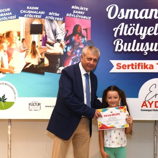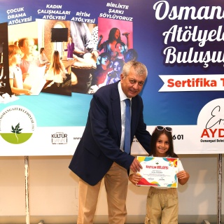 ‘Osmangazi Atölyelerle Buluşuyor’ adı altında çocuklara ücretsiz olarak verilen Çocuk Drama Atölyesi’ni başarıyla bitiren 24 öğrenci sertifikalarını Osmangazi Belediye Başkan Yardımcısı Mutlu Esendemir’in elinden aldı. Soğanlı Kültür Merkezi’nde düzenlenen törende sertifikalarını alan çocukların mutlu ve heyecanlı olduğu görüldü.