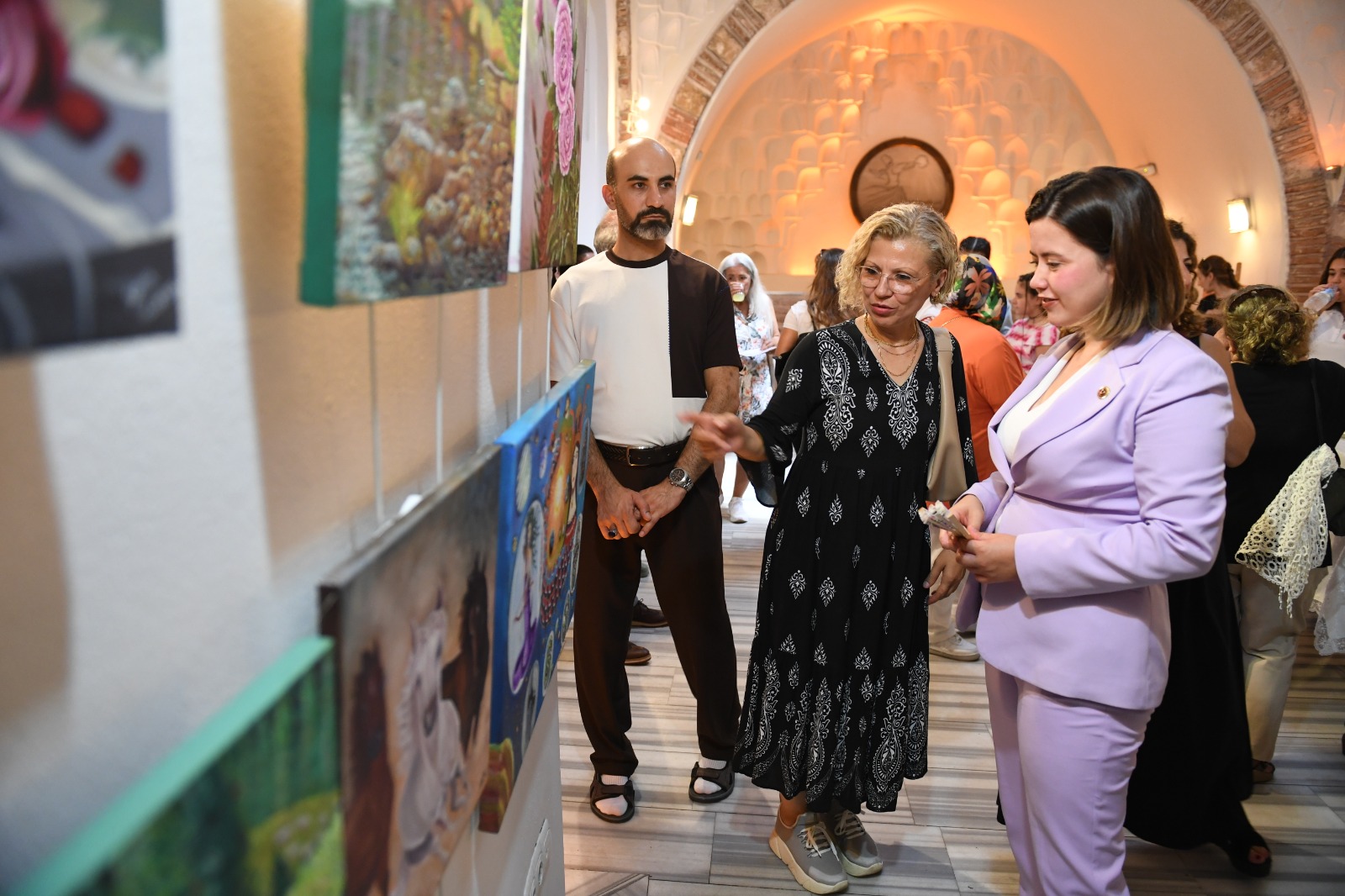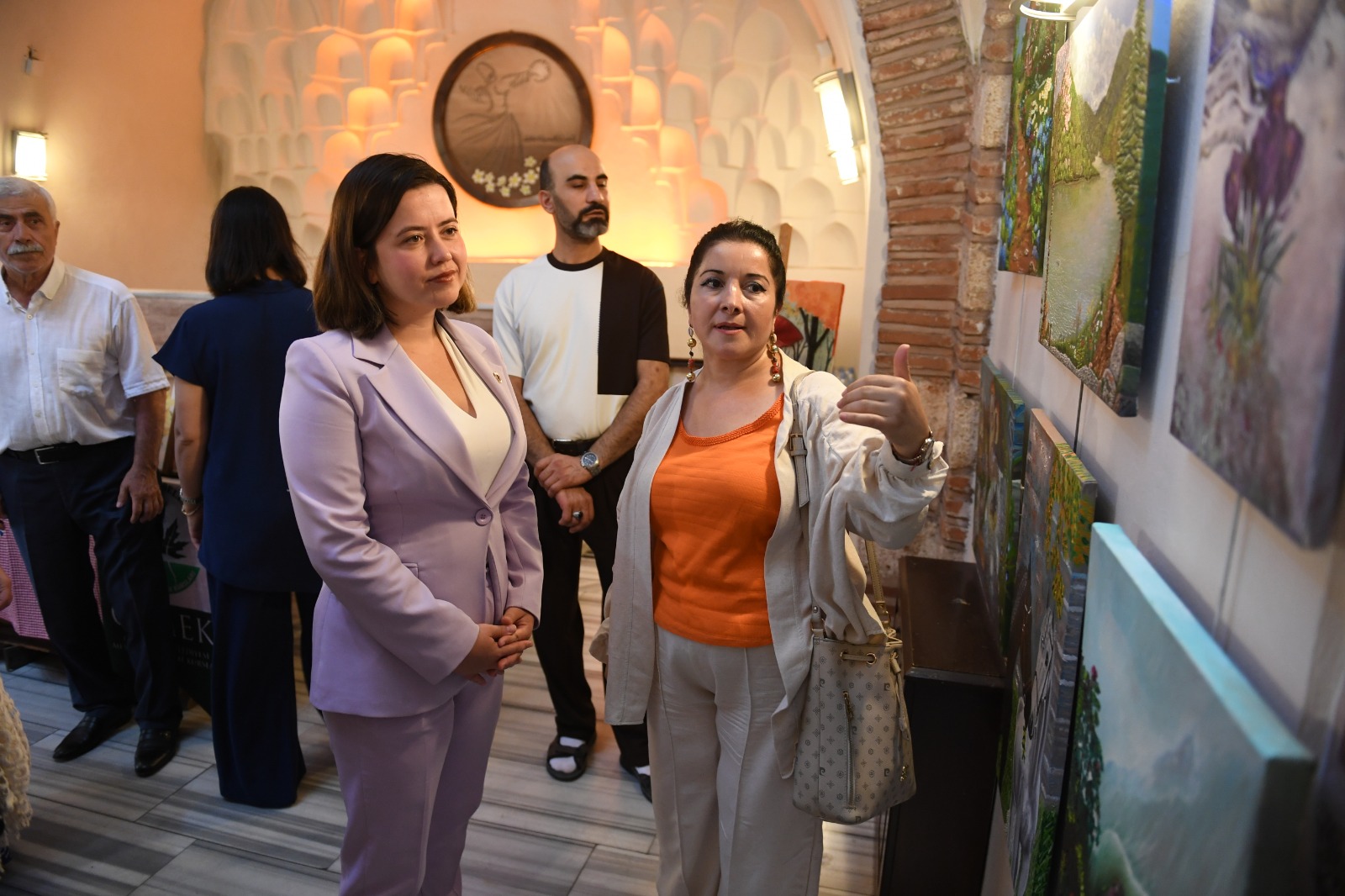 Resim kursu kursiyerlerinin el emeği göz nuru eserleri, protokolün üyelerinin yaptığı kurdele kesiminin ardından Osmangazi halkının beğenisine sunuldu. Açılış sonrasında protokol üyeleri hep birlikte eserleri inceledi. Hepsi birbirinden güzel 95 eser, sanatseverlerden tam not aldı.