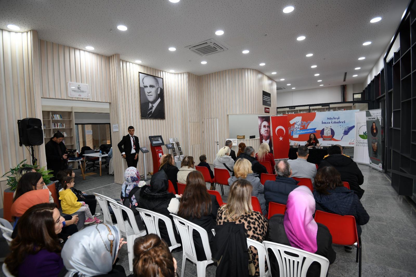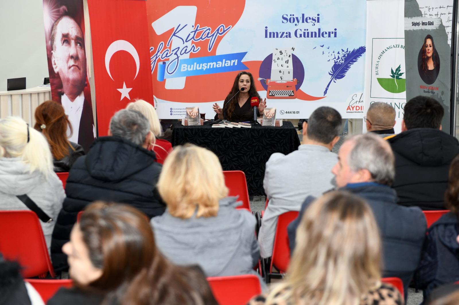 Program sonunda ödüllü oyuncu ve yazar Nilüfer Açıkalın, kitaplarını Osmangazili edebiyatseverler için imzaladı. Programa katılan Osmangazi Belediye Başkan Yardımcısı Mutlu Esendemir, yazar Açıkalın’a teşekkür çiçeği takdim etti.