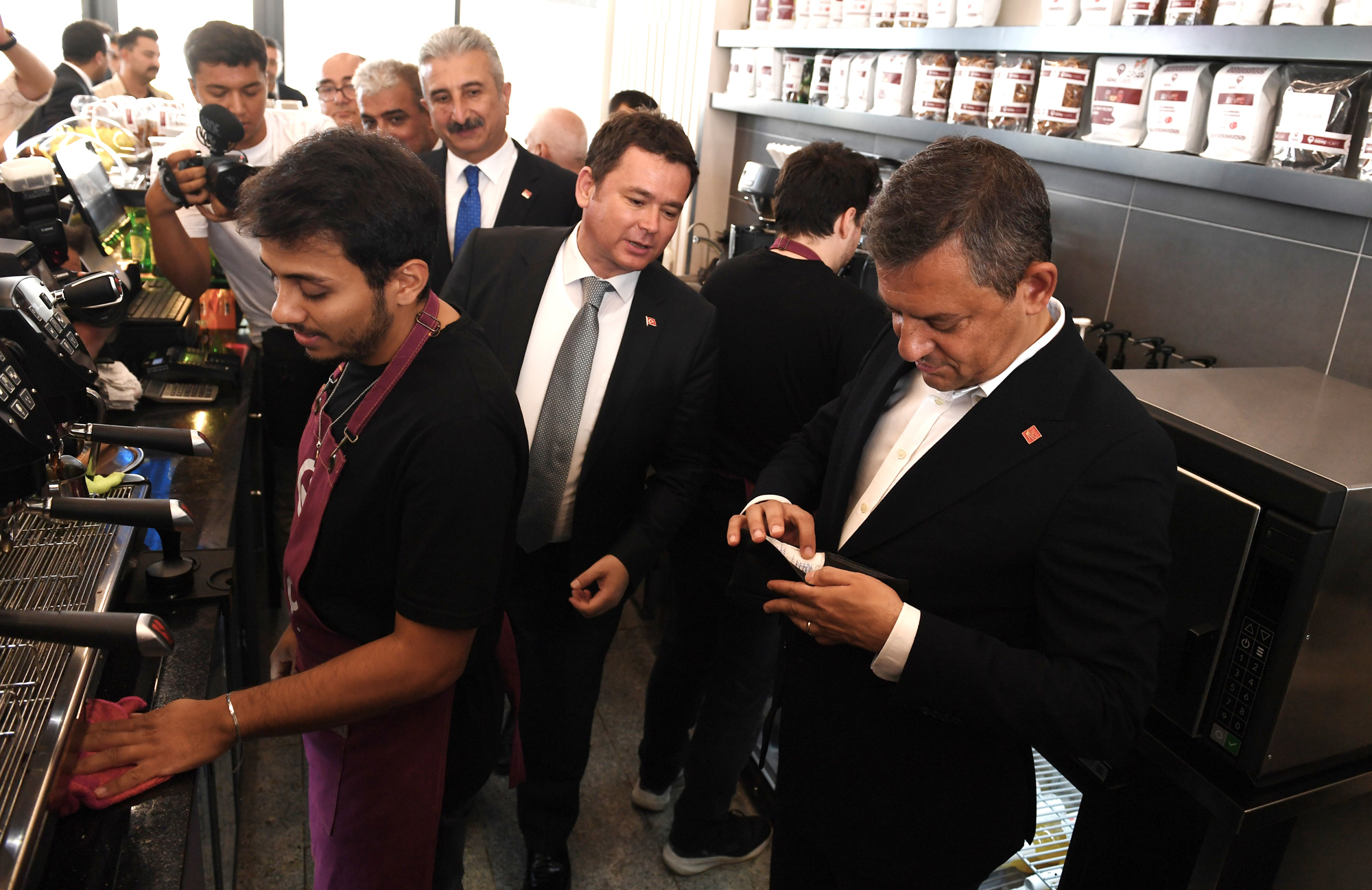 Bursa’daki programı kapsamında bir dizi ziyaretlerde bulunan CHP Genel Başkanı Özgür Özel, Osmangazi Belediyesi tarafından kente kazandırılan projeleri yerinde inceledi. İlk olarak Osmangazi Meydanı’nda yer alan Hasan Ali Yücel Dünya Klasikleri Kütüphanesi’ni ziyaret eden Özel, hem mekanı hem de raflarda bulunan kitapları inceledi. Özel’in sonraki durağı ise kaliteli ve uygun fiyatlı kahveleri Osmangazili gençlerin vazgeçemediği adres olan Genç Kafe oldu. Kahve makinesinin başına geçen Özel, kendisi için hazırlanan kahvenin tadına baktı. Kahveyi kimin ısmarlayacağı konusunda espri yapan Özel, Başkan Aydın’dan aldığı kredi kartı ile kahvenin ödemesini yaptı. Kahvenin oldukça lezzetli olduğunu ifade eden Özel, ödemesini yaptığı kahvelerin, askıda kahve olarak vatandaşlara dağıtılmasını istedi. Osmangazi Belediyesi’nin kente kazandırdığı bir diğer önemli hizmet olan Halk Lokantası’nı gezen Özel, yemek sırasına girerek aldığı günün menüsünü yedi.