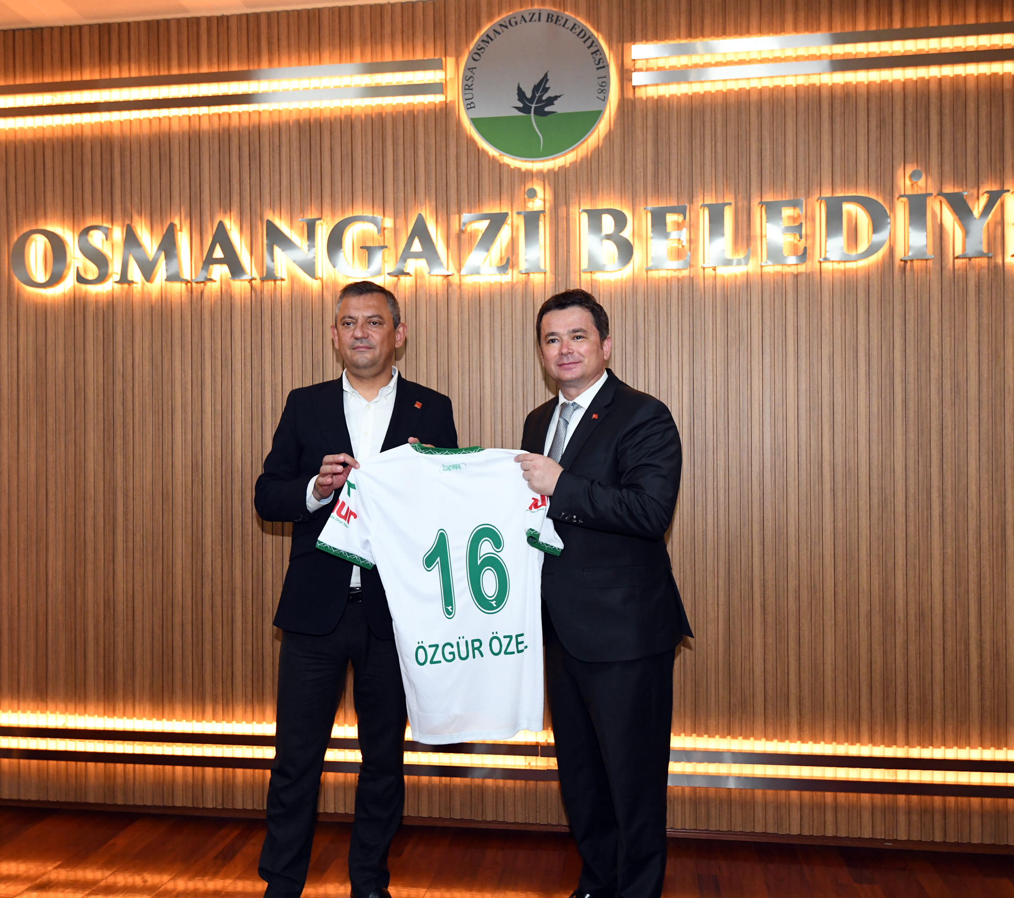 Başkan Aydın, günün anısına CHP Genel Başkanı Özel’e Bursa’yı ve Osmangazi’yi simgeleyen çeşitli hediyelerle birlikte Özgür Özel isminin yazılı olduğu 16 numaralı Bursaspor forması hediye etti.