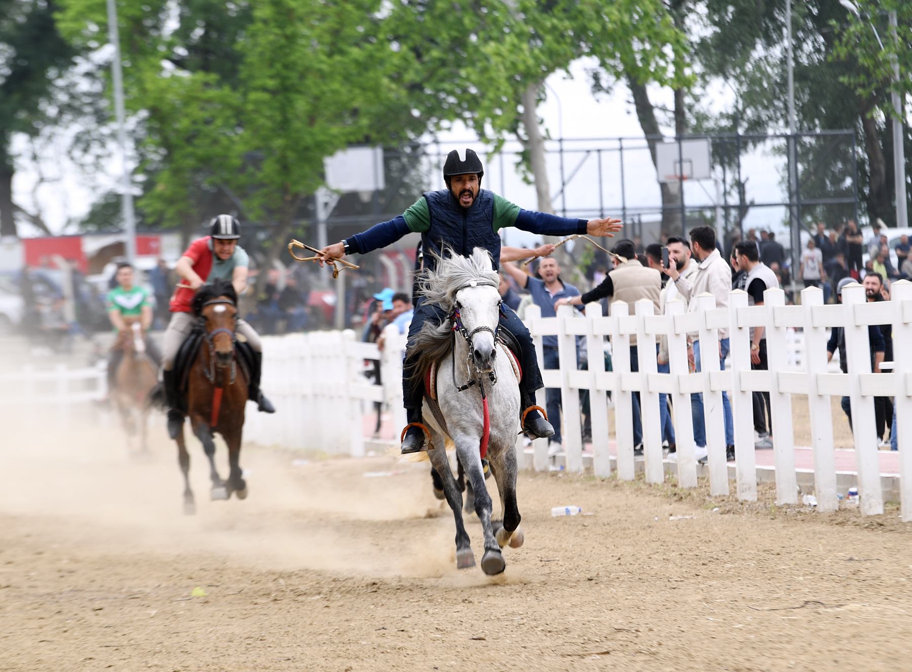 Mahalle meydanında aracından inen ve yarış alanına kadar tüm yolu at sırtında ilerleyen Başkan Aydın’a rahvan atçıları da at binerek eşlik etti. At sırtında tüm yarış parkurunu turlayarak izleyicileri selamlayan Başkan Aydın’ı vatandaşlar alkış yağmuruna tuttu.