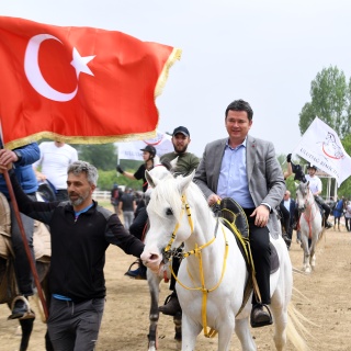 Osmangazi Belediye Başkanı Erkan Aydın, yarış alanına ata binerek giriş yaptı.