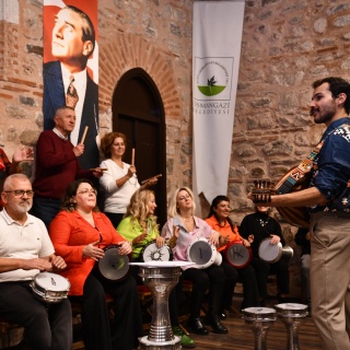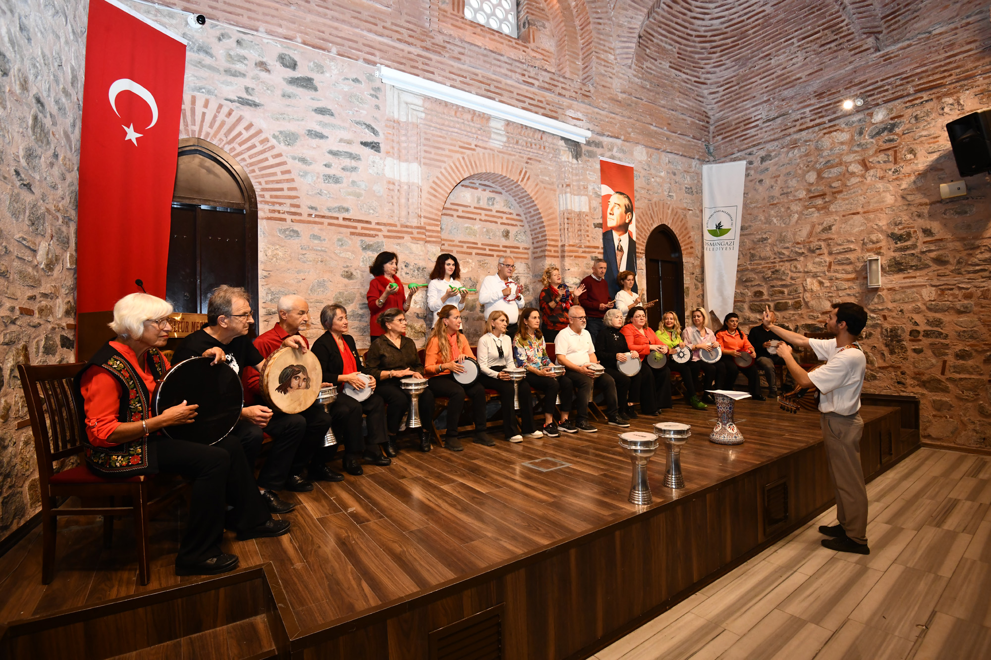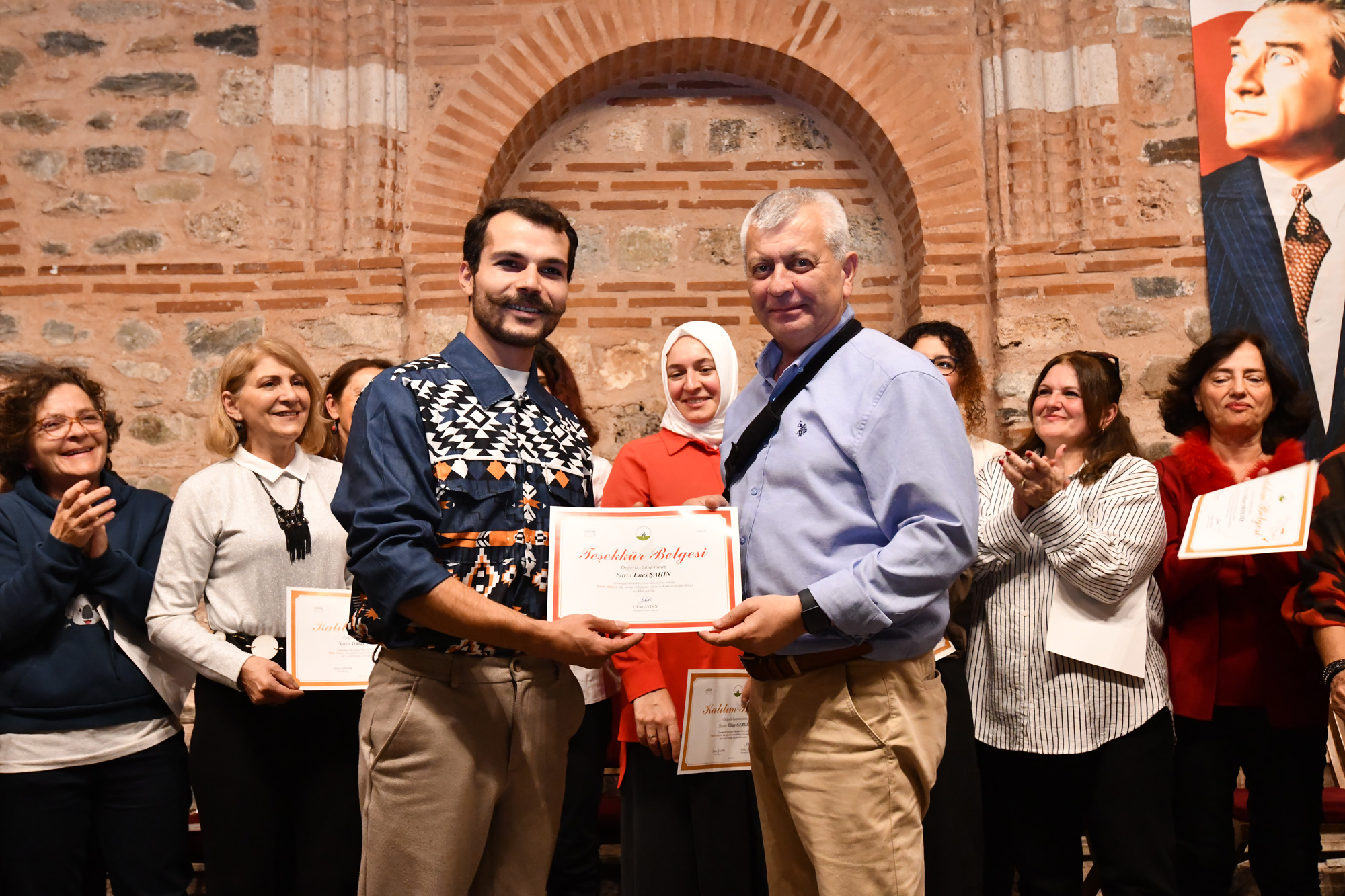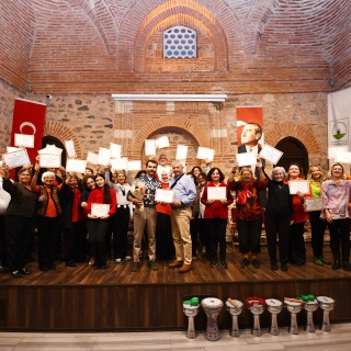 Ritim Atölyesi’nin ikinci dönemini başarıyla tamamlayan ve sertifikalarını alan kursiyerler, bu imkanı kendilerine sunduğu için Osmangazi Belediye Başkanı Erkan Aydın’a teşekkür etti.