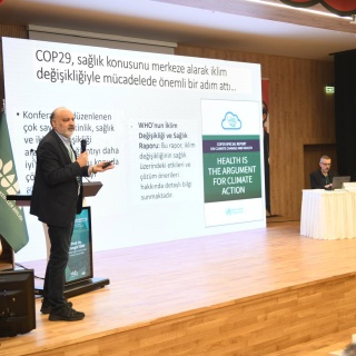 Türkiye Sağlıklı Kentler Birliği Başkanı ve İzmir Büyükşehir Belediye Başkanı Dr. Cemil Tugay ise yaptığı konuşmada, “Paris Antlaşması ile dünyanın ısı artışının 1,5 derecede sınırlandırılması hedefi konulmuştu. Maalesef bu hedefe hızlıca ulaşıldı. 2030 yılında dünyanın karbon nötr olması hedefleniyordu. En azından yüzde 45’lik bir azaltım hedeflenmişti. Ancak dünya, bu hedeften çok uzak durumda. Son yıllardaki sıcaklık ortalamaları 1,5 derecenin üzerine çıktı bile. Çevresel sorunlar, tarımda rekolte azalması, kuraklık, ekosistem değişimleri, denizlerimizde müsilaj oluşması, ülkemizde daha önce görmediğimiz haşere türlerinin ortaya çıkması gibi durumlar işe bu sıcaklık artışının sonuçları. Ekosistemin bozulmasına, bunun da kent yaşamımıza olumsuz yansımasına tanık olacağız. Türkiye’nin daha hızlı adımlar attığı bir plana ihtiyacı var. Türkiye, 2053 yılında karbon nötr hedefi koymuş durumda. Ancak bizim bu hedefe 2153’te dahi ulaşmamız imkansız. Bütün dünya ülkeleri kömür tüketiminde geriye giderken, biz kömür yatırımlarımızı arttırmış durumdayız. Yıllık 558 milyon ton karbon emisyonumuz var. Kişi başına 6,71 ton karbon üretiyoruz. Bu rakamlarla dünyada karbon üretiminde 15’inci sıradayız. Karbon üretimine neden olan en büyük etkenin kömüre dayalı enerji üretimi olduğunu görüyoruz. Daha sonra sanayi ve tarım geliyor. Enerjiyi daha verimli kullanmak yolunda önemli çalışmalar yapmamız gerekiyor” dedi.