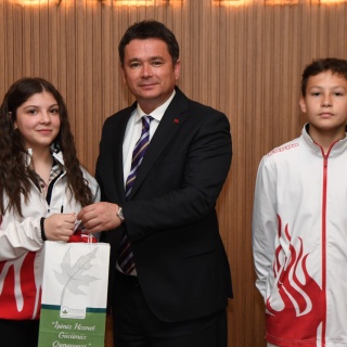 Katıldıkları turnuvalarda Bursa’yı başarıyla temsil eden ABFA Spor Kulübü eskrim sporcularını makamında kabul eden Başkan Aydın, genç sporcuları tebrik etti. U12 Erkekler Flöre Birincisi Vedat Tuna Karalar, U14 Bayanlar Flöre Birincisi Ada Küfeciler, Yıldız Kadınlar Flöre kategorisinde Türkiye Birincisi Ada Küfeciler, Genç Kadınlar Flöre kategorisinde Türkiye İkincisi Ayşe Aksoy, başarılarını Başkan Aydın ile paylaştı.