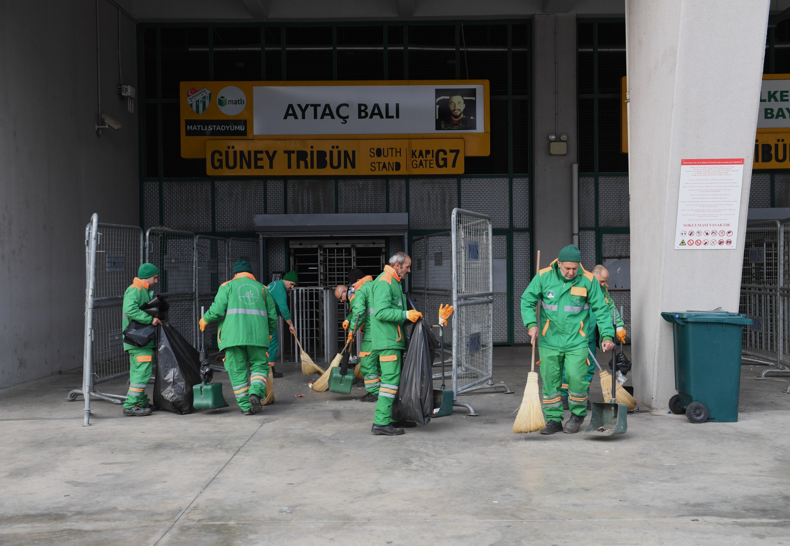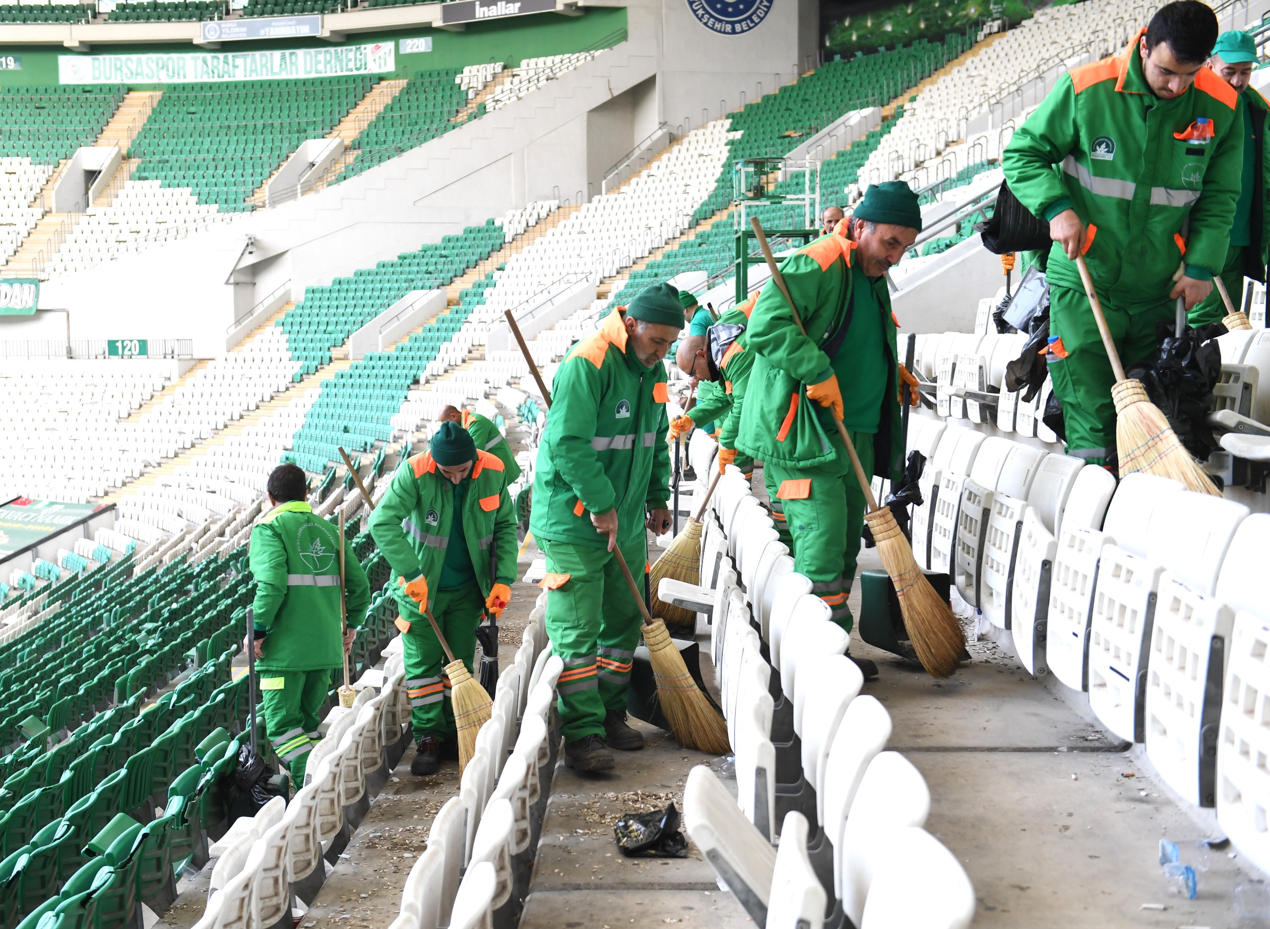 Bursa’nın en değerli markası Bursaspor’a maddi manevi her alanda destek olan Osmangazi Belediyesi, maçların ardından stadyumun içinin ve çevresinin temizliğine de destek veriyor.
