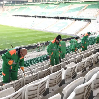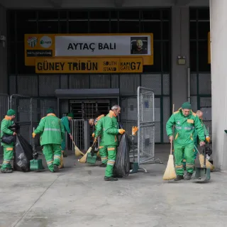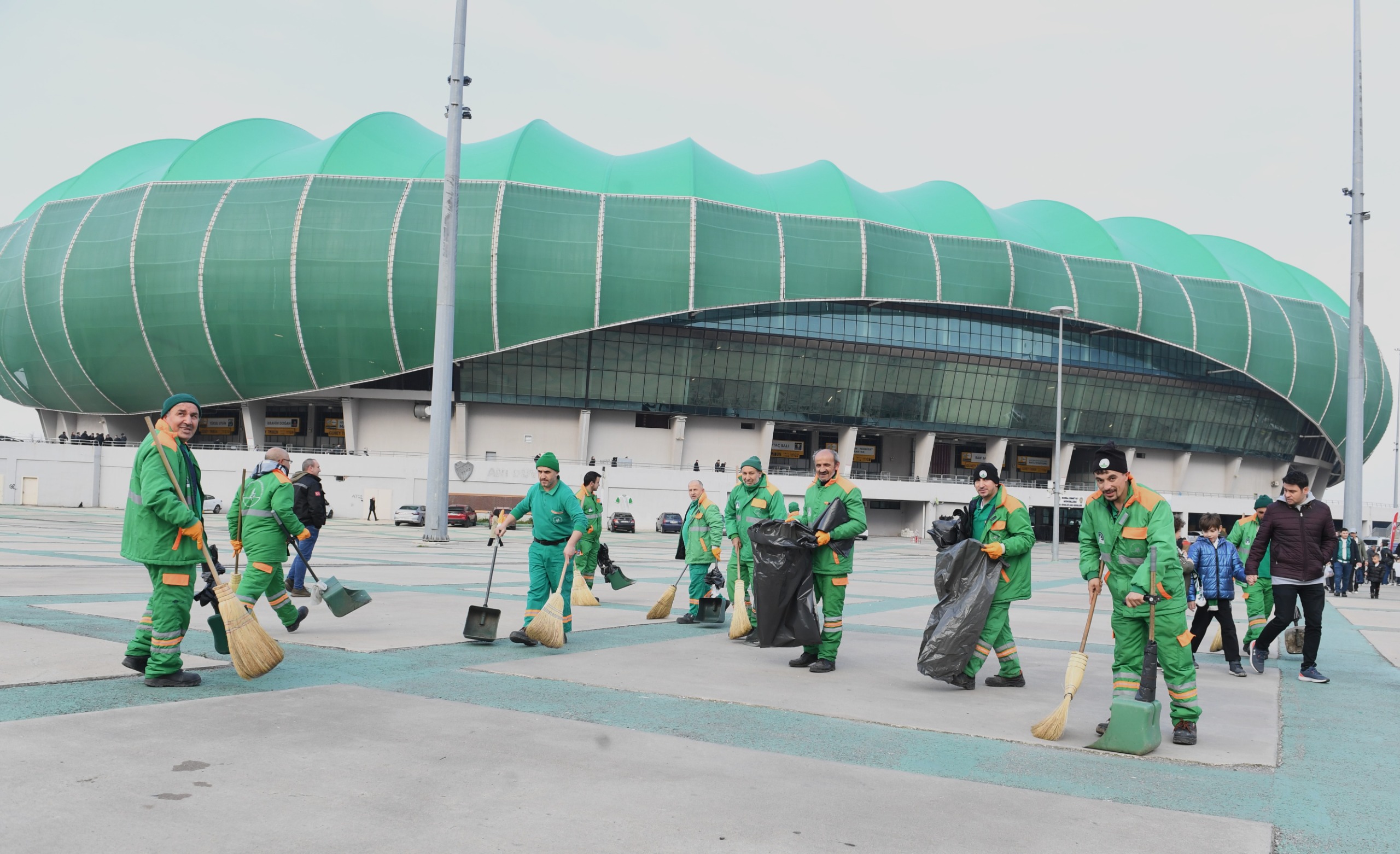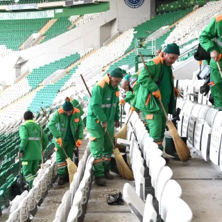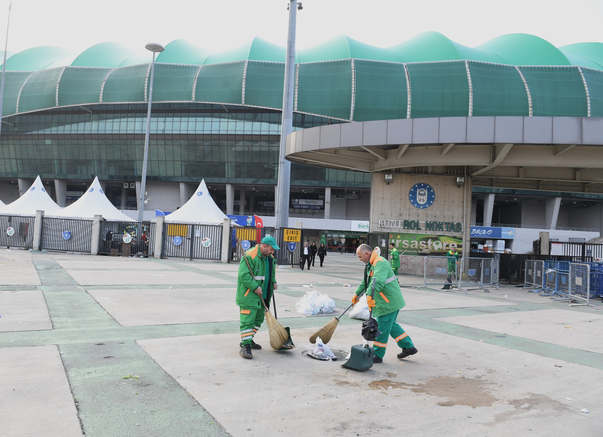 Osmangazi Belediyesi Temizlik İşleri Müdürlüğü ekipleri, bu hafta oynanan ve Bursaspor’un 2-0 kazandığı Ergene Velimeşespor karşılaşmasının ardından temizlik çalışması gerçekleştirdi. Stadyum çevresinde, koridorlarda ve tribünlerde iki gün boyunca temizlik çalışması yürüten ekipler, 43 bin 361 kişi kapasiteli dev stadyumu baştan aşağı temizleyerek bir sonraki karşılaşma için hazır hale getirdi.