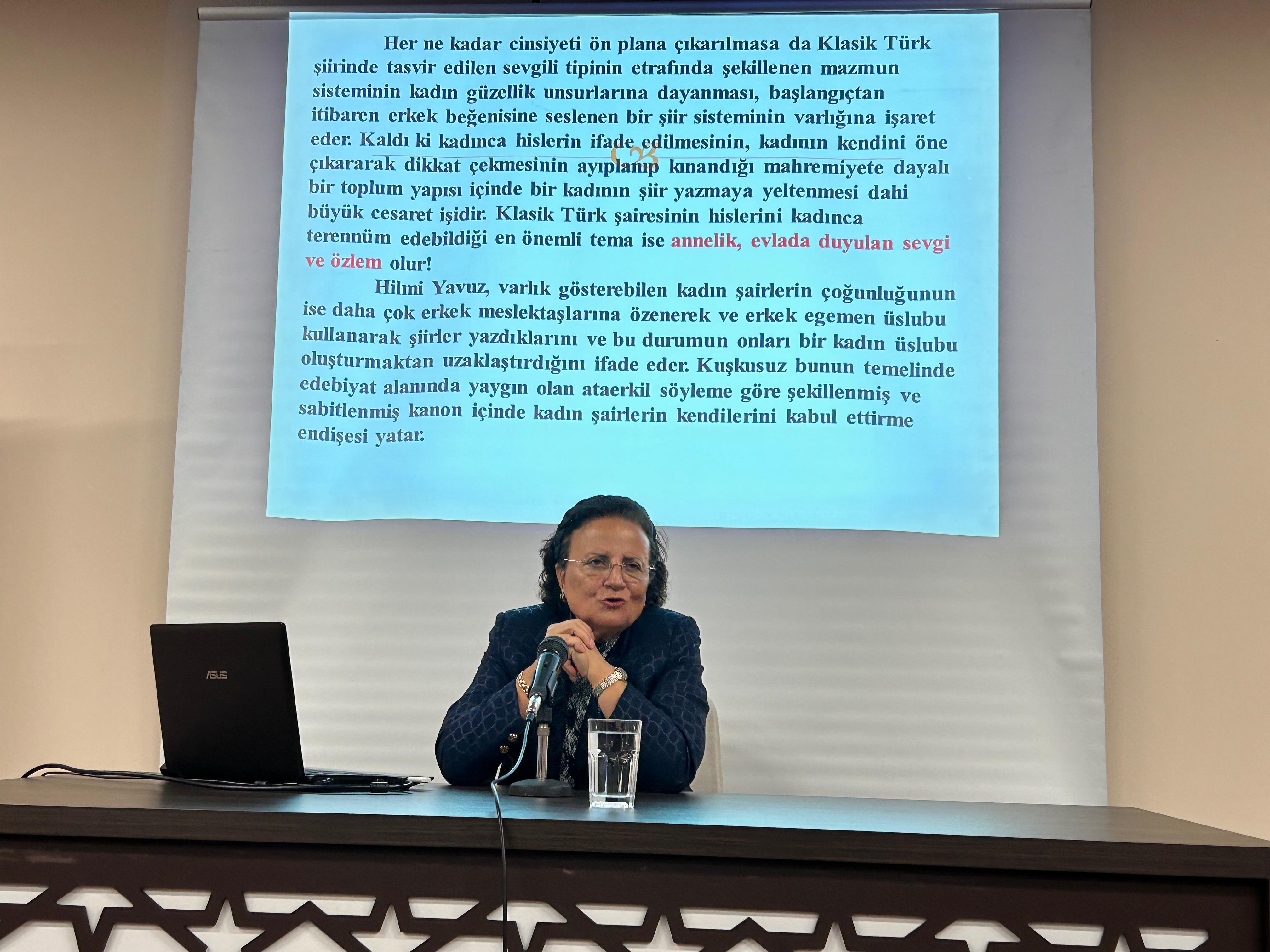 Klasik dönem, tanzimat, meşrutiyet ve cumhuriyet dönemlerinde öne çıkan kadın şair ve yazarların tanıtıldığı konferansta, kadın yazarların eserlerindeki kadın karakterler ile toplumsal cinsiyet rolleriyle nasıl bir ilişki kurduğu ve kadınların yazınsal katkılarının edebiyatı nasıl zenginleştirdiği incelendi. Program sayesinde katılımcılar, kadınların edebiyat dünyasındaki varlıklarını ve eserlerdeki etkilerini yeniden düşünme fırsatı buldu.