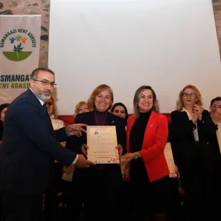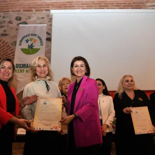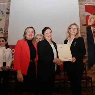 Söyleşinin sonunda konuşmacılara ve programa katılan kadın muhtarlara günün anısına Bursa'nın ilk kadın milletvekili Şekibe İnsel'in kendi el yazısıyla doldurduğu beyanname ve ilçelerden aldığı oy tablosu üzerine hazırlanmış tablo plaket hediye edildi
