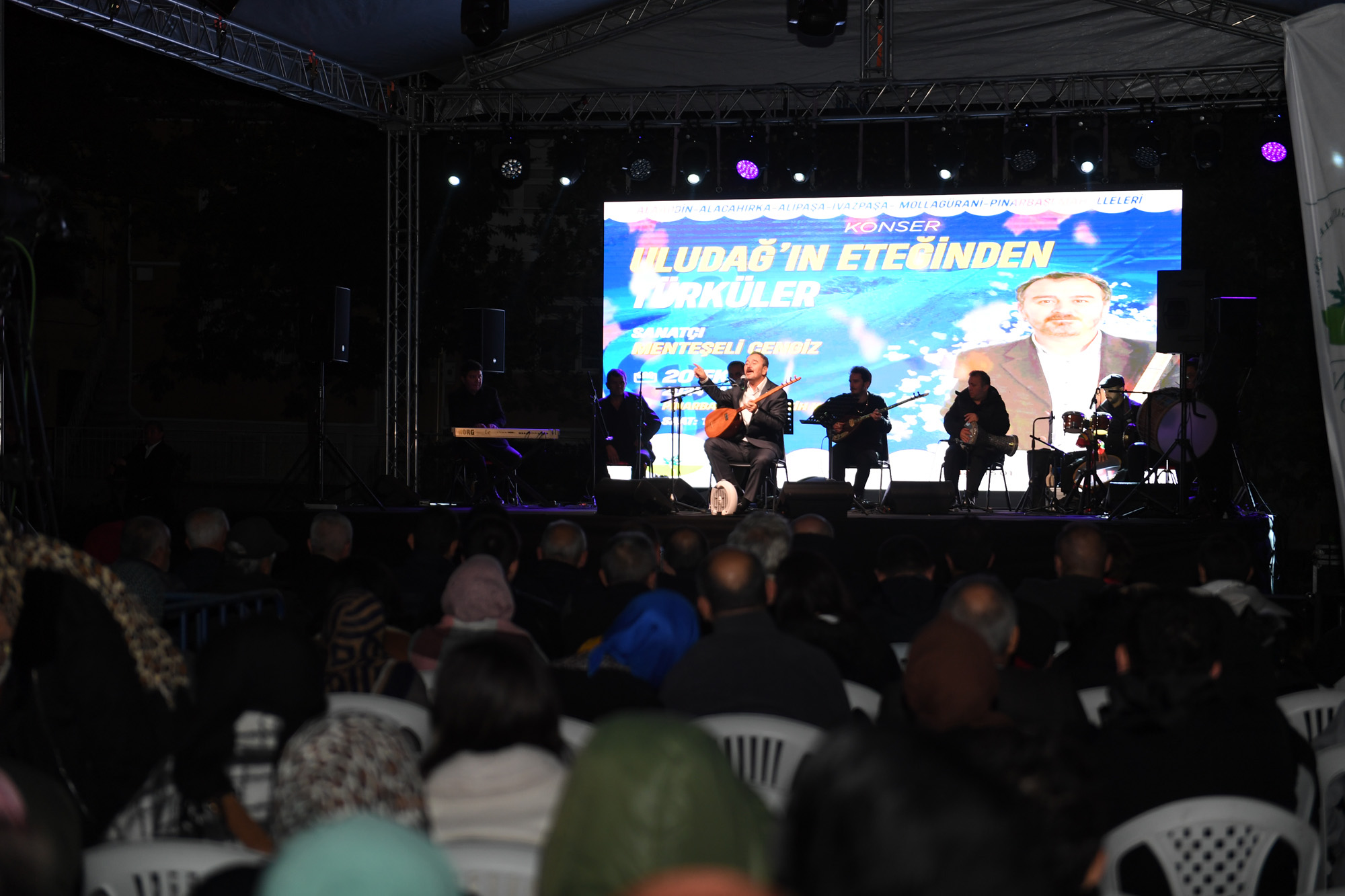 Osmangazi Belediyesi tarafından düzenlenen Uludağ’ın Eteğinden Türküler konserinde sahne alan Bursalı sevilen sanatçı Menteşeli Cengiz, söylediği birbirinden güzel türküler ile Alaaddin, Alacahırka, Alipaşa, İvazpaşa, Mollagürani ve Pınarbaşı mahallelerinin sakinlerine müzik keyfi yaşattı.