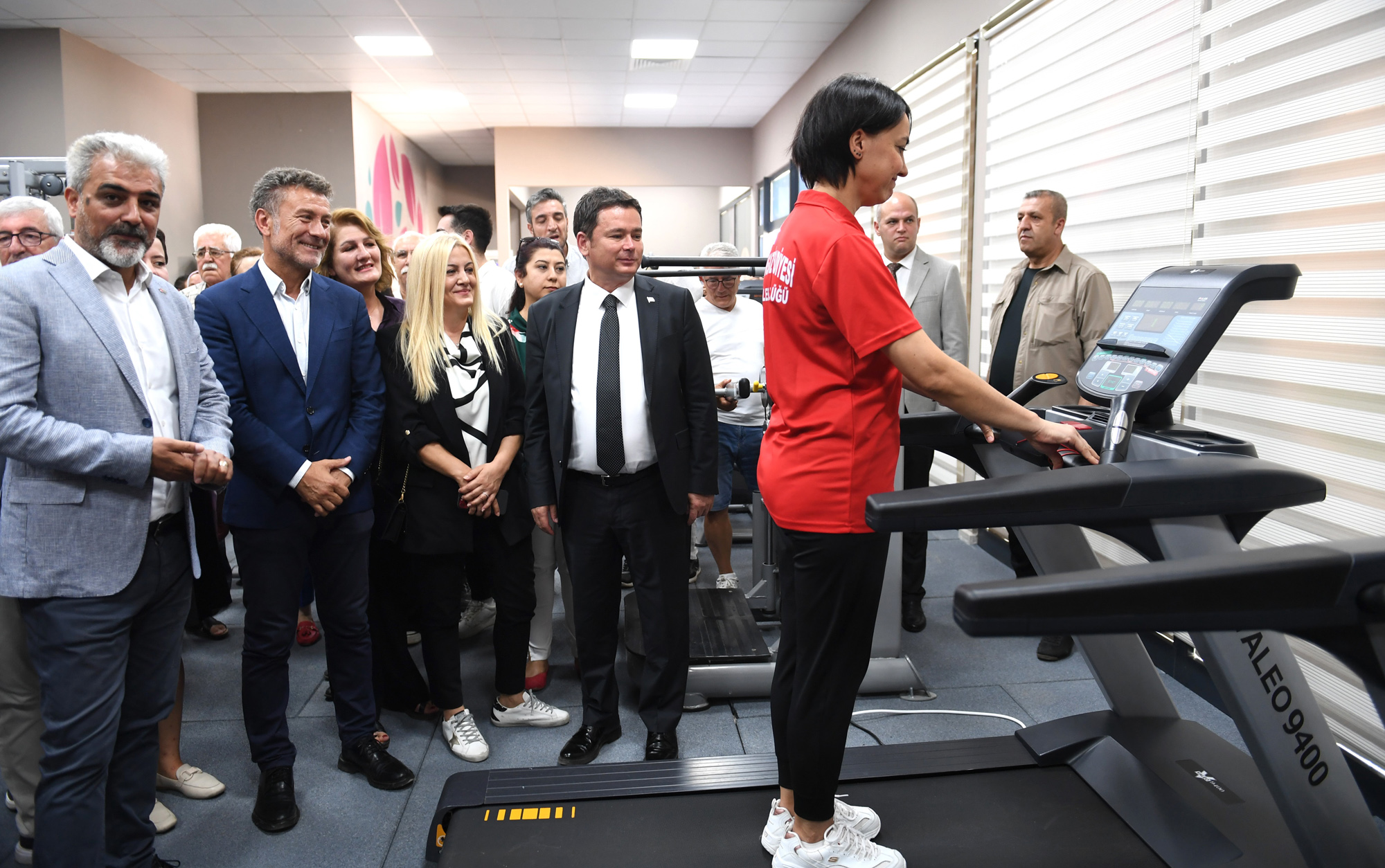 Konuşmaların ardından Başkan Aydın ve protokol üyeleri, Yenibağlar Kadın Spor ve Yaşam Merkezi’ni gezdi.