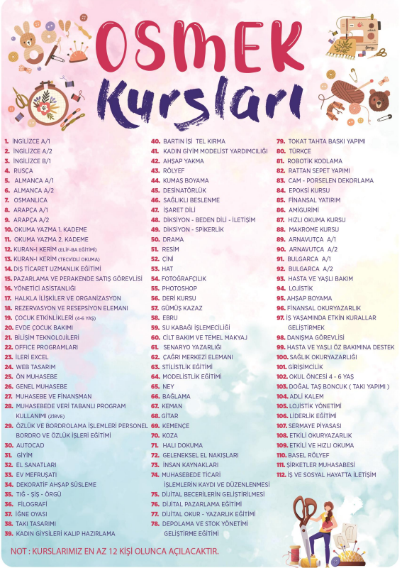 Bu sebeple sınıf açılabilecek kurslara yeterli kursiyer başvurusu yapılan branşlar belirlenir.