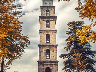 Hisarı çevreleyen surların ‘Osmangazi Cadde’ üzerinde bulunan burcunun üzerinde konumlanmıştır