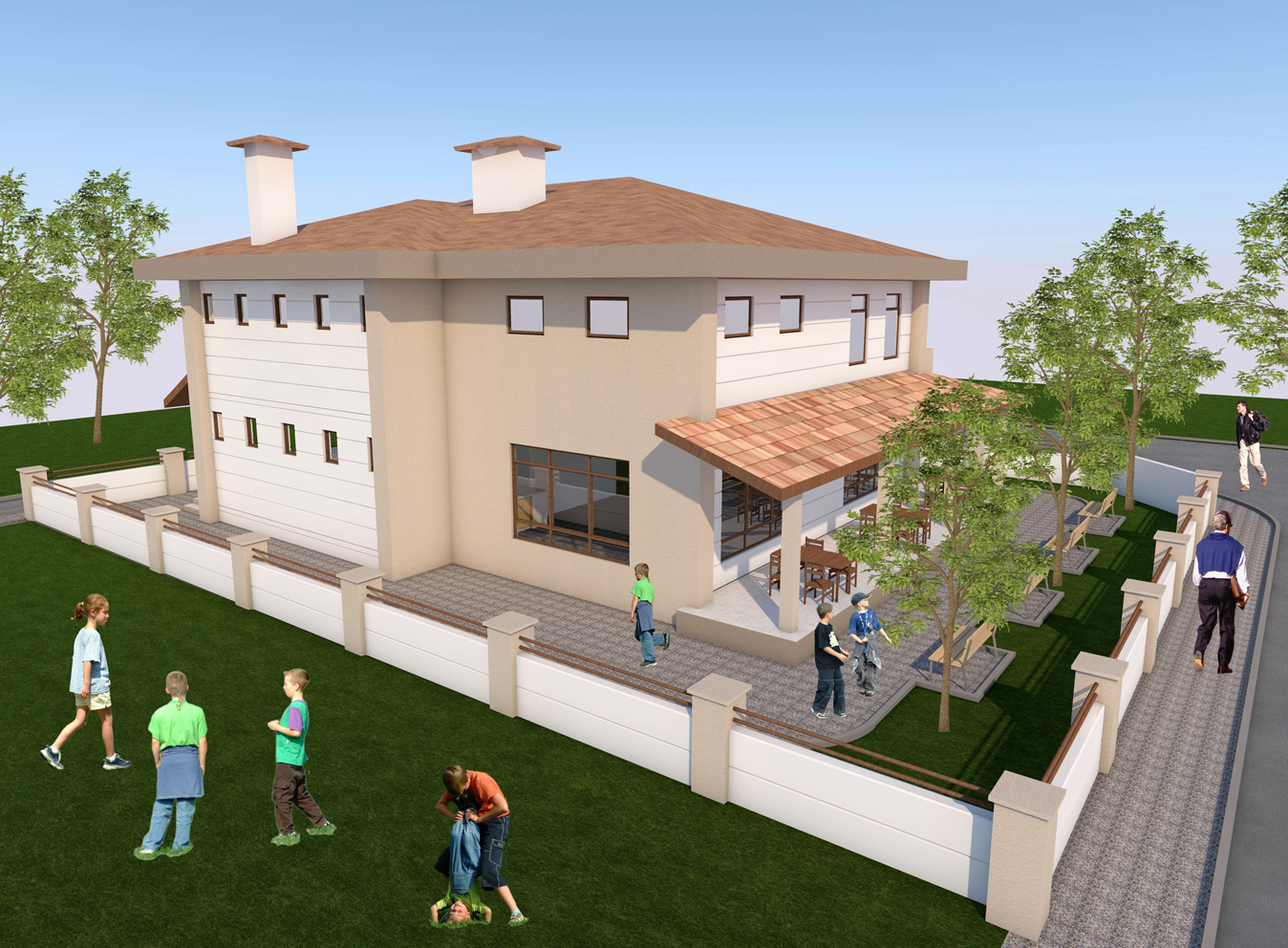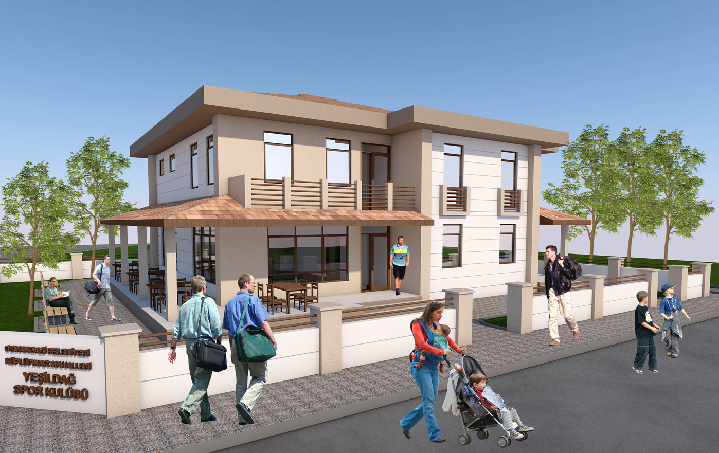- Bina, lokale hizmet edecek 52,48 m²’lik teras ve bahçesindeki açık oturma alanları ile mahallemizin hizmetinde.