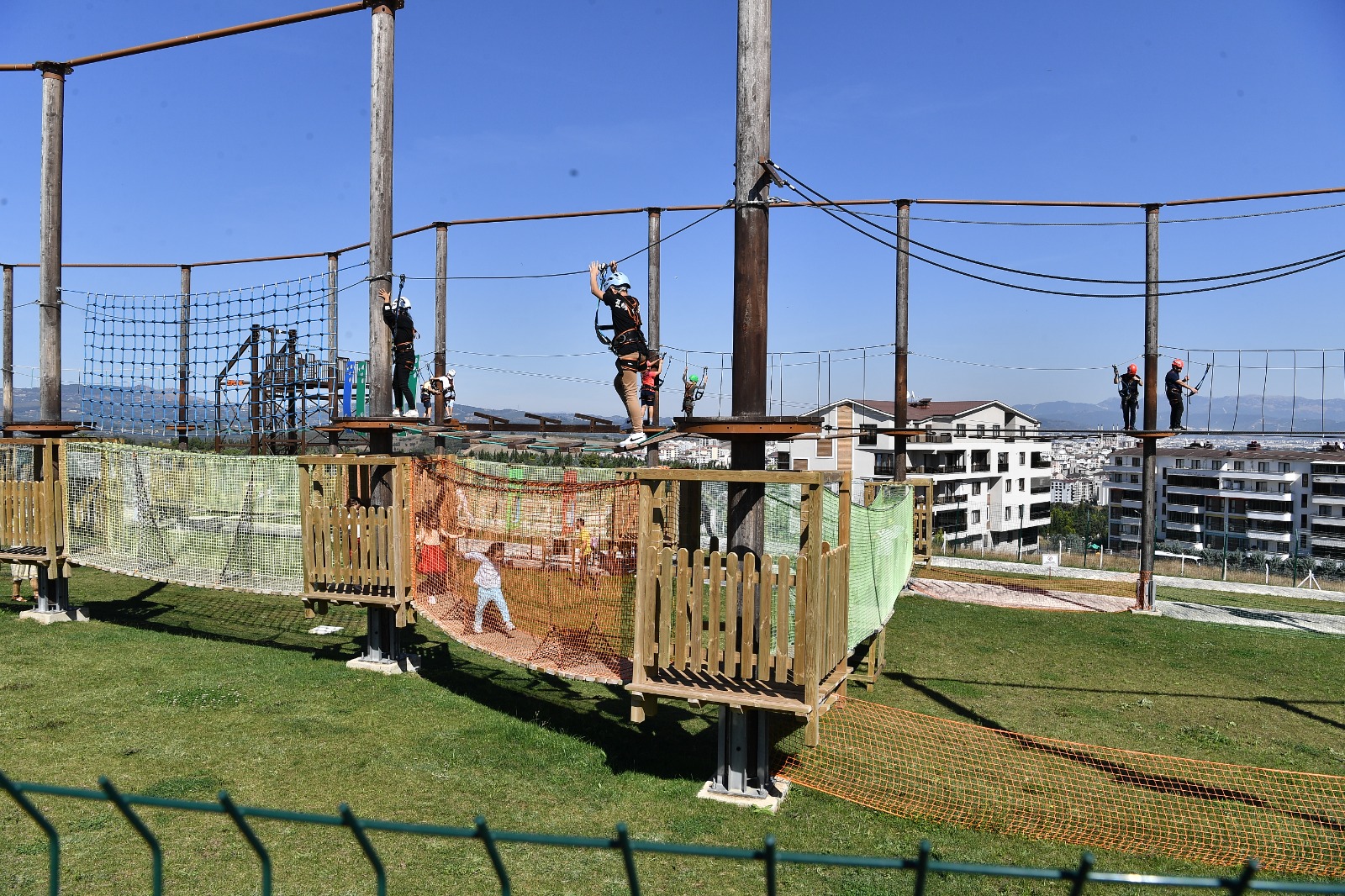 Yaşama heyecan katmak isteyenlerin adresi olan Macera Bursa Parkı, Bursa’nın gelişerek büyüyen bölgesi Hamitler’de inşa edildi. 7’den 77’ye herkese hitap eden tesisimizde, zipcoaster, zipline, serbest düşüş, tırmanma duvarı, macera ip parkuru, merkez kule, fitnes alanı gibi 19 etaplı ip parkuru ile ekstrem dolu aktiviteler yer alıyor. 34 farklı türden 233 bin çiçeğin bulunduğu çiçek bahçesi, yürüyüş yolları, eğitici doğal çocuk oyun ve eksersiz alanları, tematik parkı ile kafeteryası ziyaretçilere adeta görsel şölen yaşatıyor. Ayrıca parkta bulunan şehrimizin simge yapılarından Irgandı Köprüsü, Somuncu Baba Fırını, Hacivat Karagöz gibi 20 farklı figürün yer aldığı tematik park küçük büyük herkesin beğenisini kazanıyor. Çocuklar için kurulan masal bahçesinde çocukların hayal dünyasını süsleyen Pinokyo, Pamuk Prenses, Nasrettin Hoca, Temel Reis, Kül Kedisi gibi 122 adet masal kahramanı teması da büyüleyici bir yolculuğa çıkarıyor.